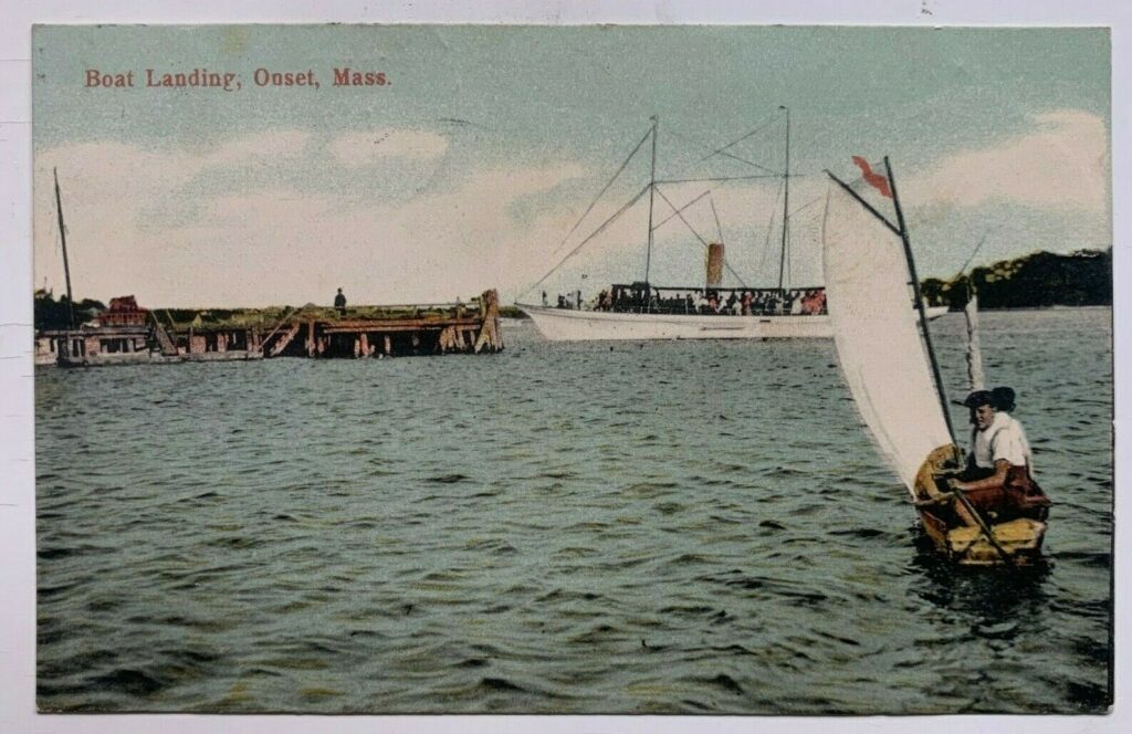 The “Monohansett” was a sidewheel steamer used as a ferry for Martha’s Vineyard. It stopped at Onset as an inbound and outbound passenger vessel.
